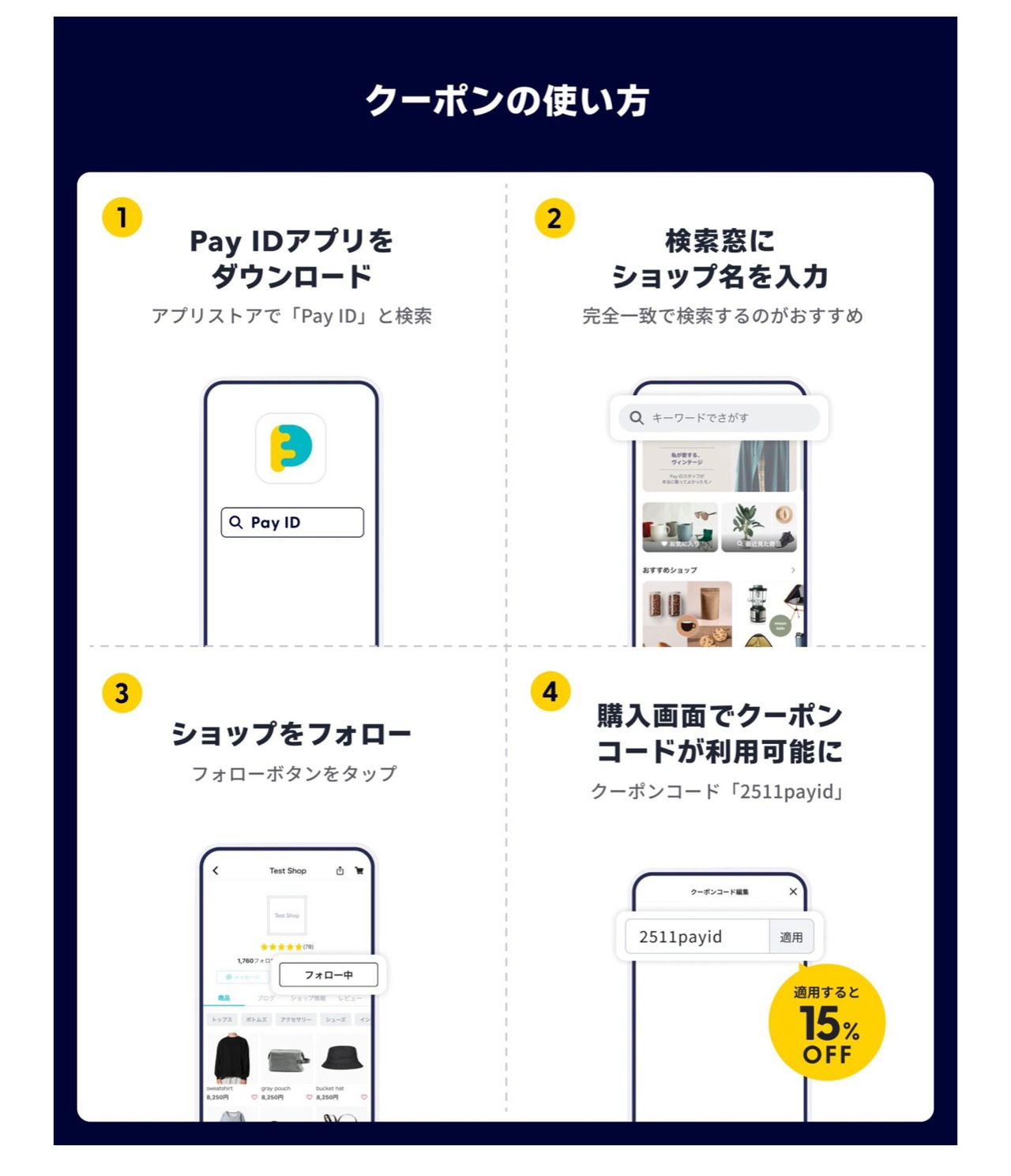ご購入画面にて、クーポンコードを「2511payid」を適用ください。